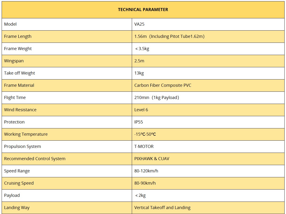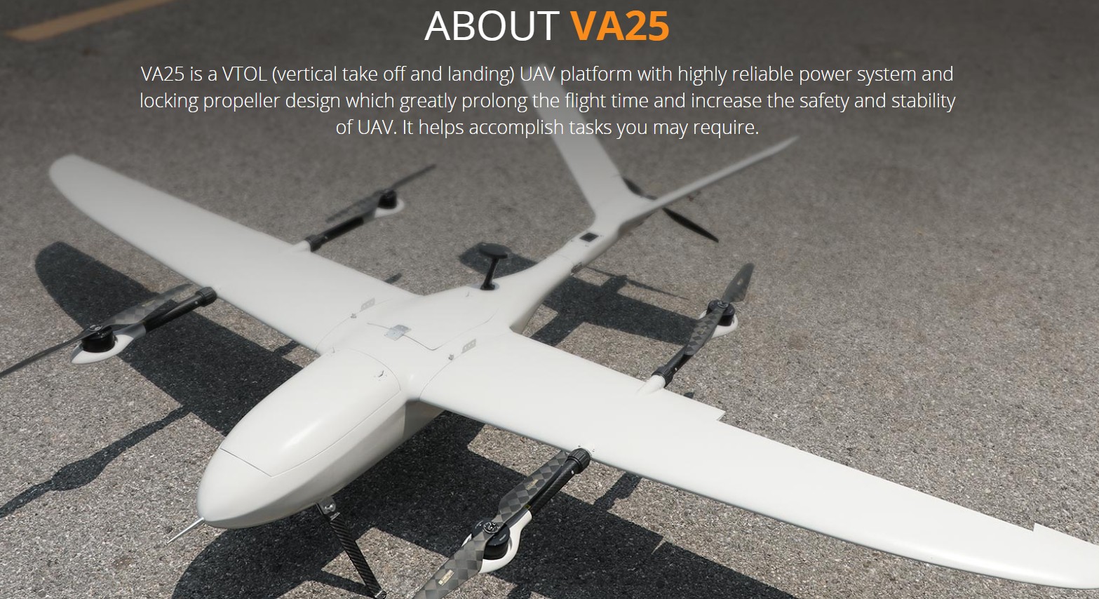 - The VA25 drone frame has a power system without a battery, flight control, GPS, or remote control.